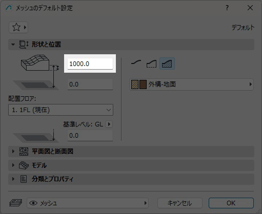 ・[基礎下端]フロアを選択し、[メッシュツール]を用いる |