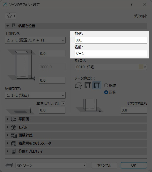・[デザイン]メニューから[ゾーンを更新]して、面積を再計算する