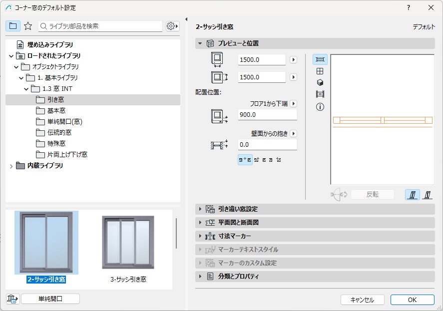 コーナー窓の配置