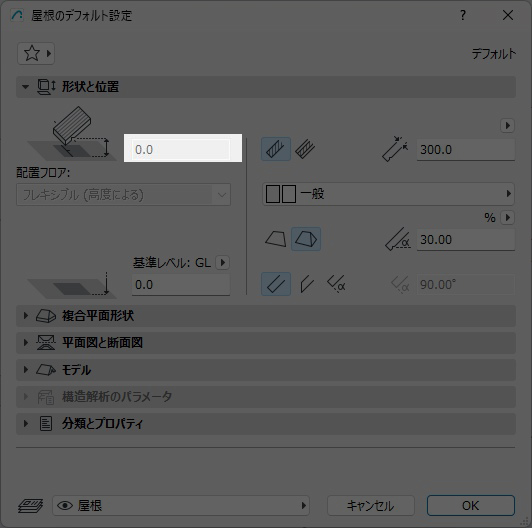 屋根の配置フロアまで基準線をオフセット ARCHICAD100, 屋根, 基準線, オフセット, ベーシック 屋根の配置フロアまで基準線をオフセットする 設定ダイアログ ツール名 屋根 ※この動画には音声はありません