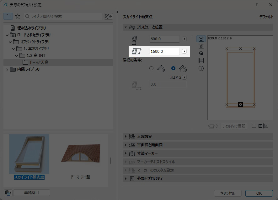 天窓の高さを変更する