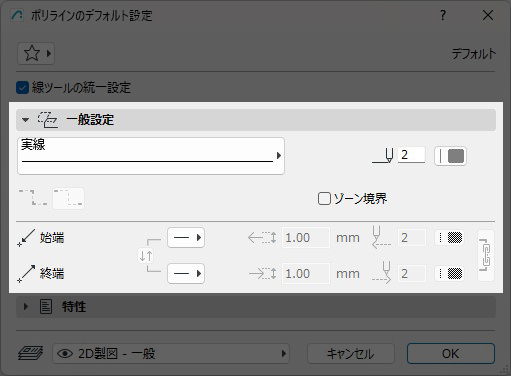ポリラインの一般設定