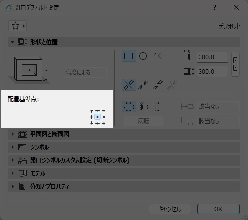 開口の配置基準点を設定する