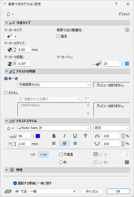 高度寸法の配置